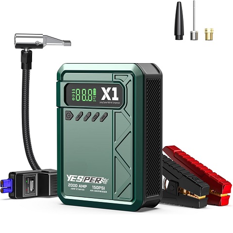 Amazon - YESPER Car Jump Starter with Air Compressor, 2000A Peak Portable Jump Pack with 150PSI Digital Tire Inflator, 12V 12000mAh Battery Charger Jumper Starter for Up to 8L Gas & 6L Diesel Engines