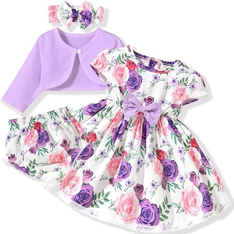 Amazon - fioukiay Baby Girl Dress and Cardigan Set Infant Girl Bowknot Dresses Outfit Set Clothes with Diaper Cover Fall Winter